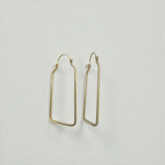 14K solid geometric hoops with lever backs. Sturdy and comfortable, perfect to add some flash to a night out! 1.75" tall, 3.41g.